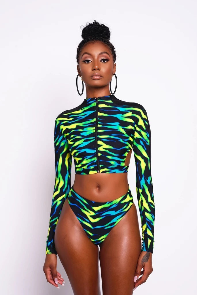 Printed Split Bikini Swimsuit Sexy Lace-up Triangle Ladies Swimwear