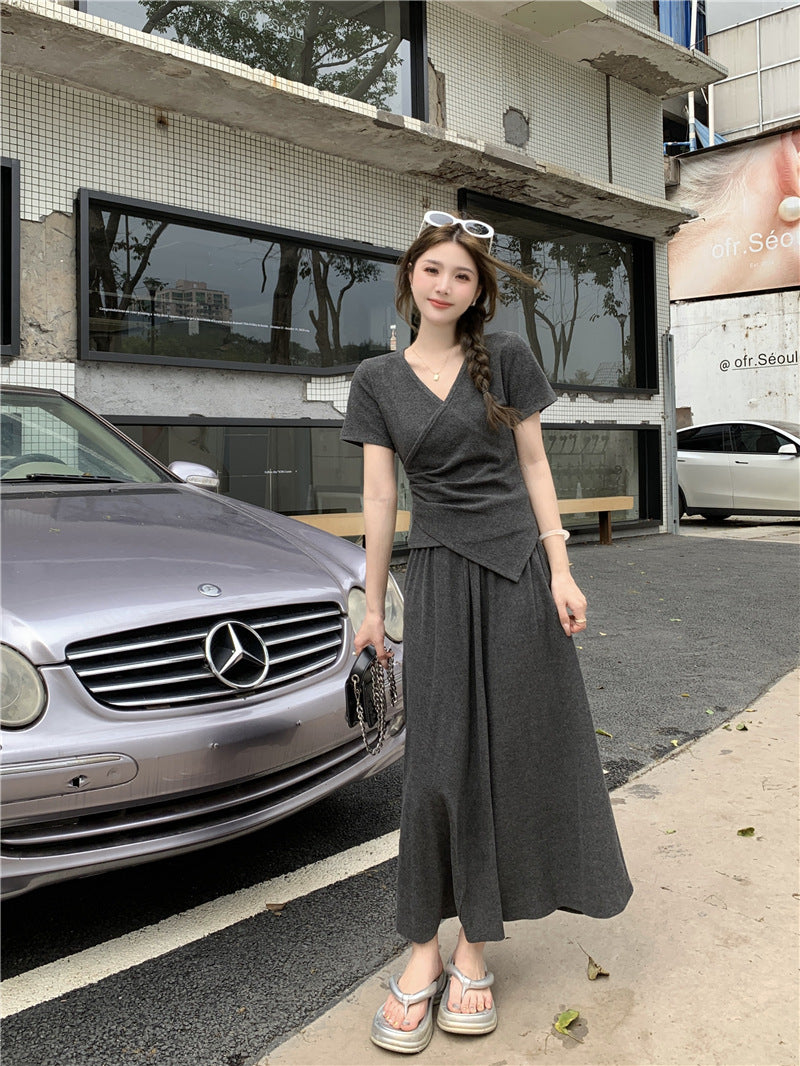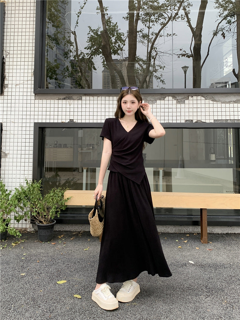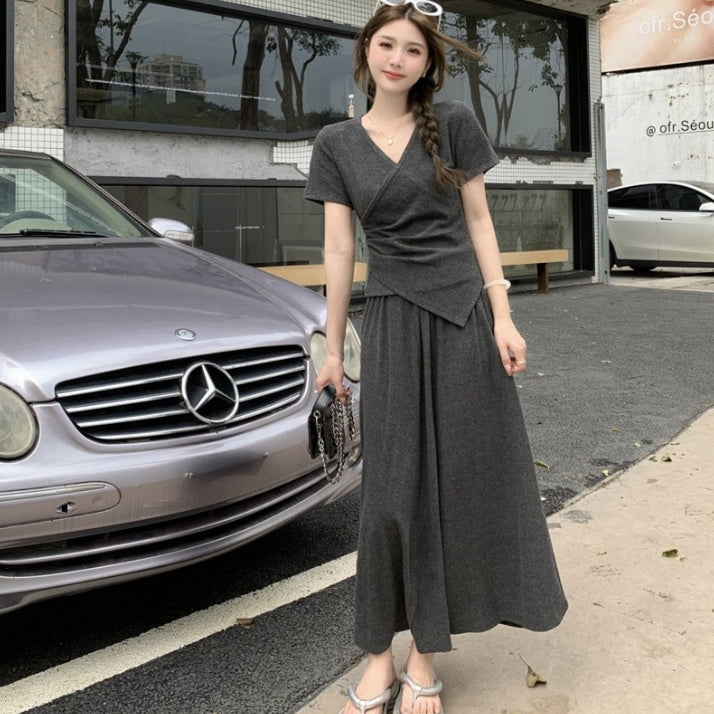 Professional Casual Short-Sleeved Top Skirt Elegant Set - Spandex Chenille (2 Colors, M-4XL, Private Socialite)