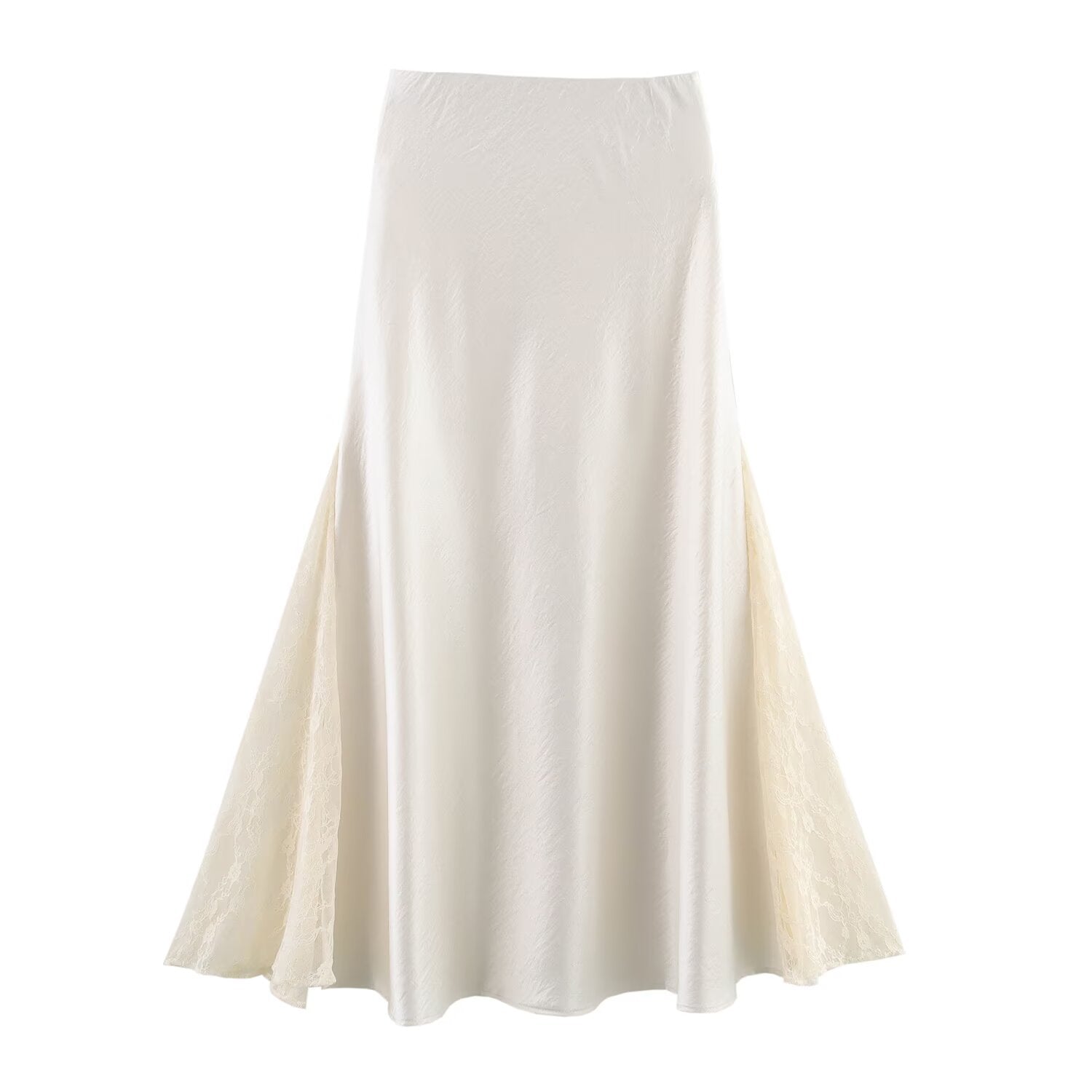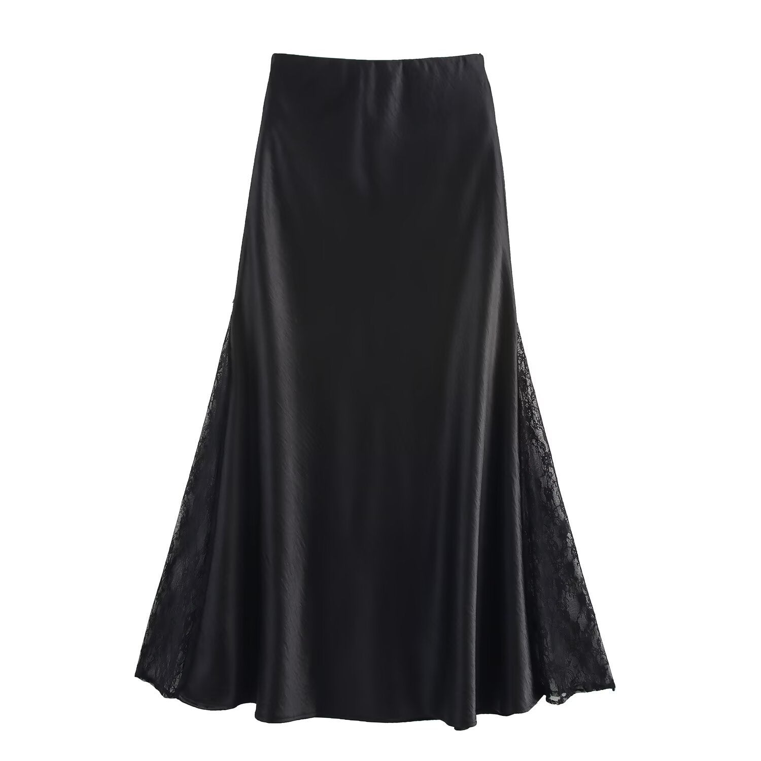 Professional Double-Sided Lace Fishtail Satin Skirt - Polyester High-Waisted (Black/White, M-XL, College Style)