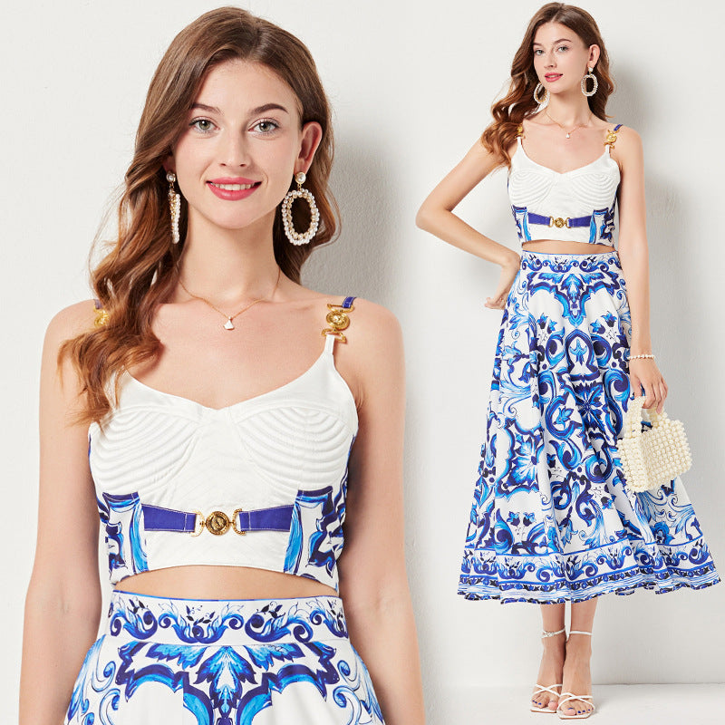 Professional Sling Top and Skirt Urban Suit - Mid-Length Sleeveless (S-2XL, Female, Urban Style)