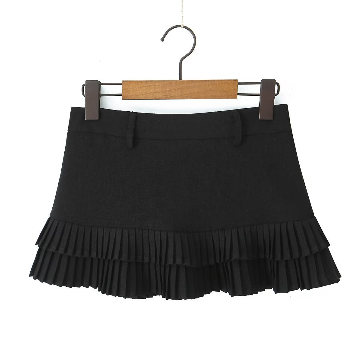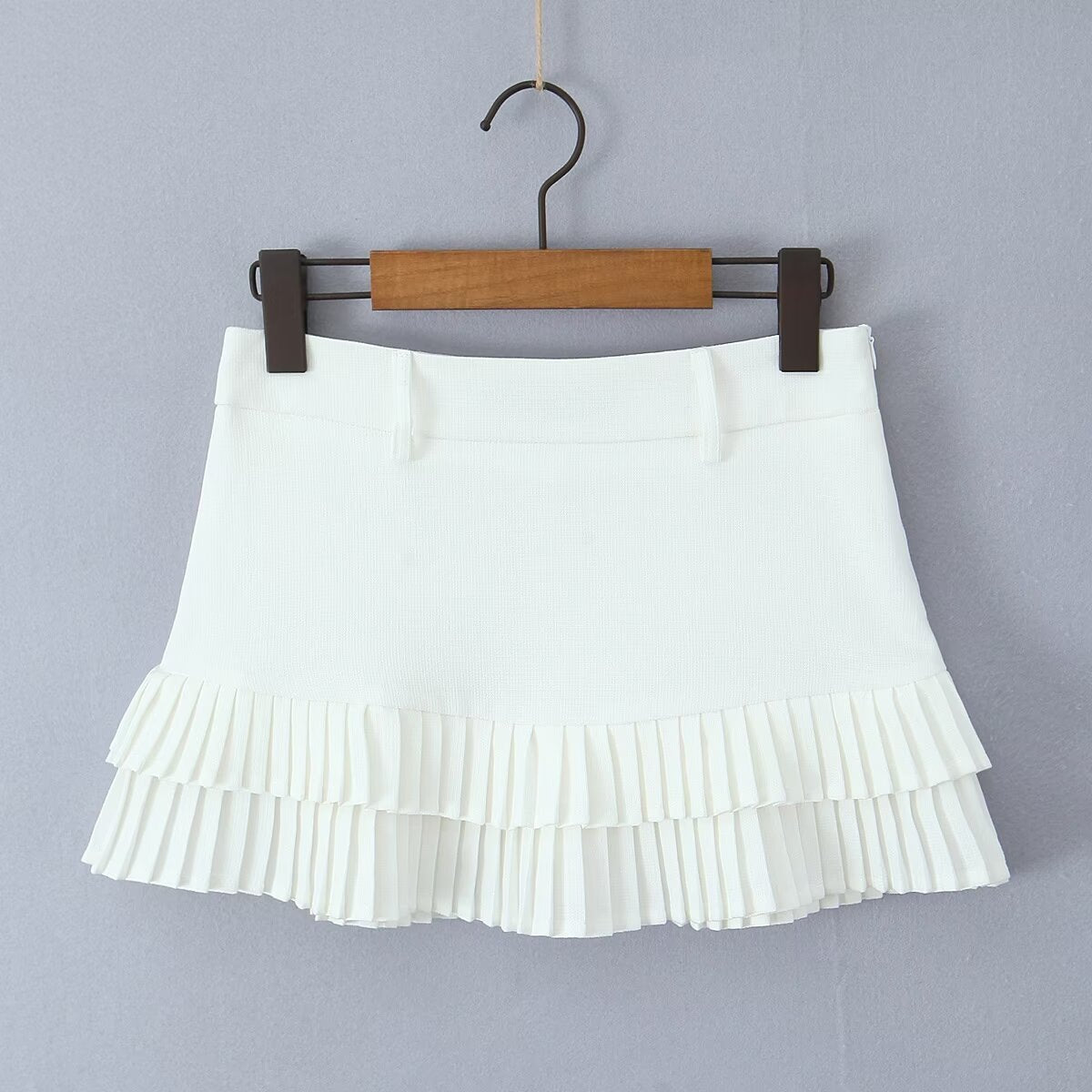 Professional Women's Pleated Mini Skirt - Polyester Stitching Design (3 Colors, S-L, Splicing Elements)