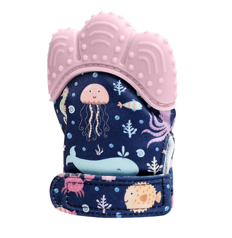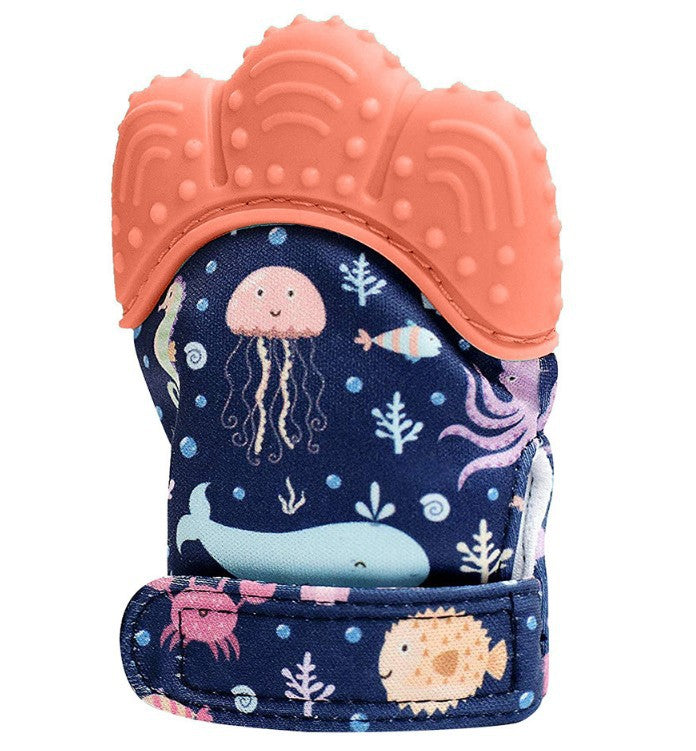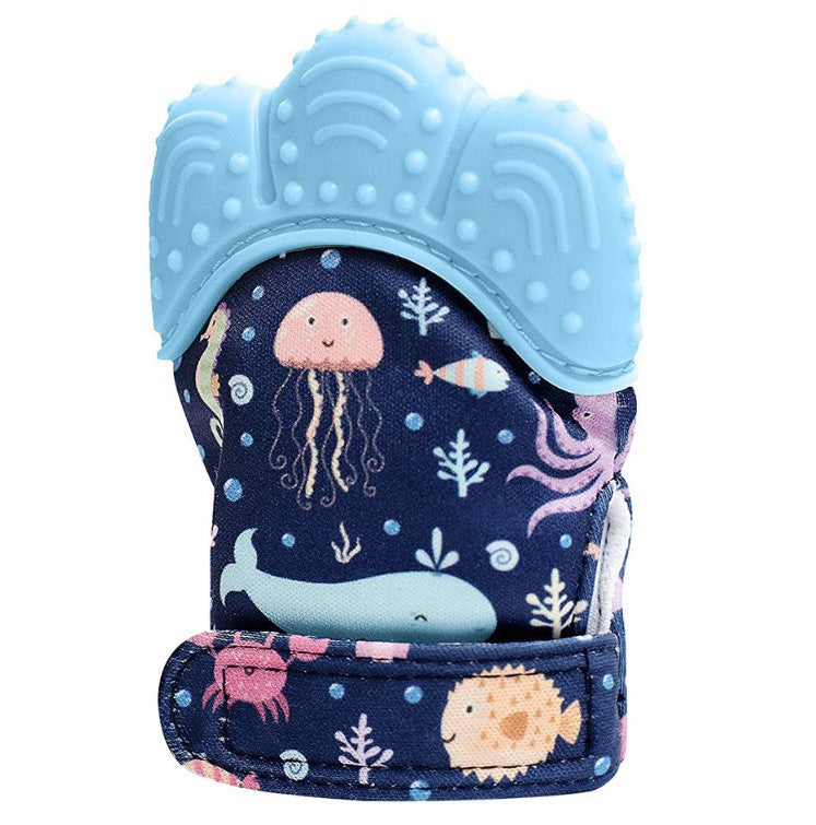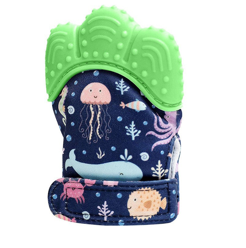 2021 Baby Tänder Handskar Squeaky Grind Tänder Munvård Tänder Smärta Relief Nyfödd bit tugga ljud leksaker