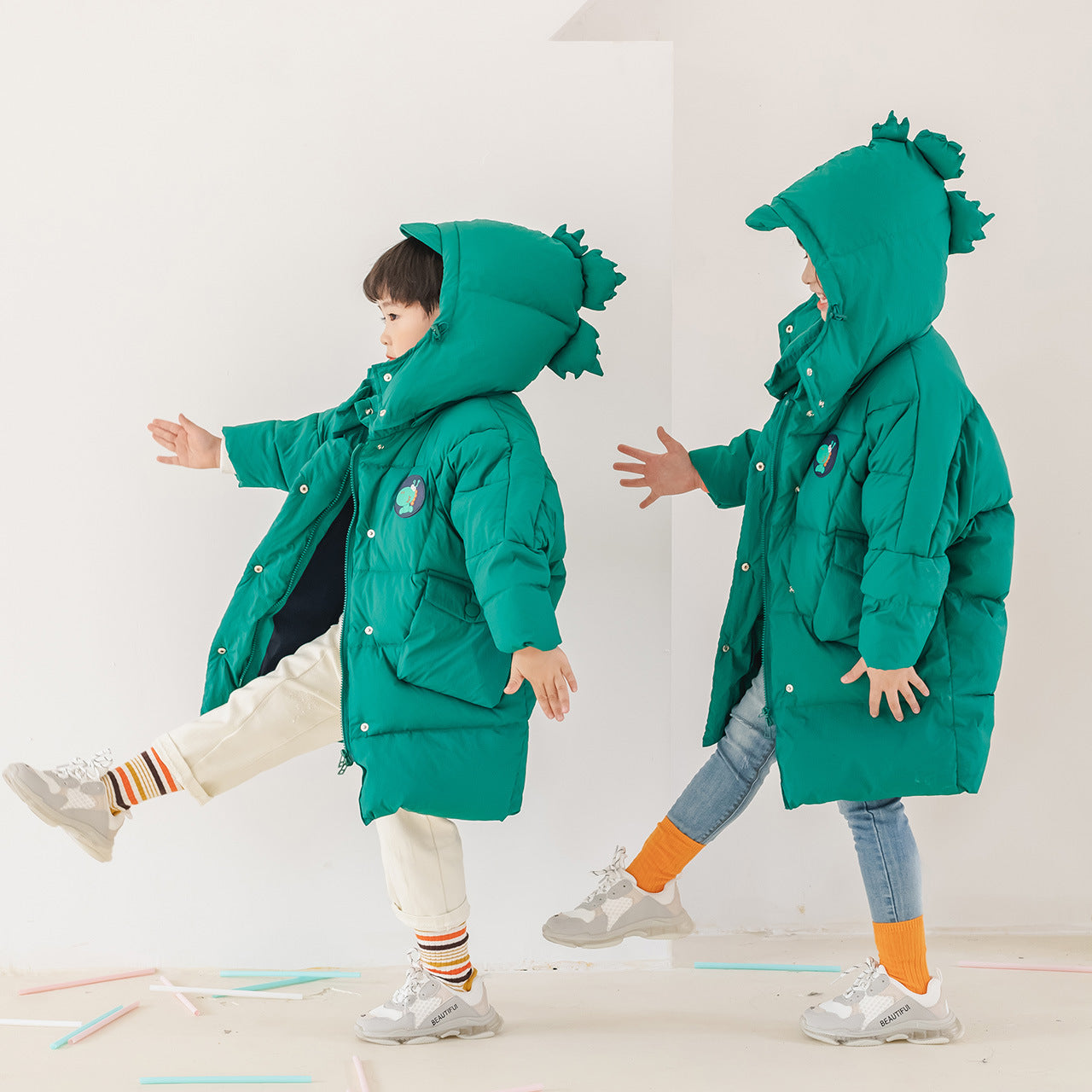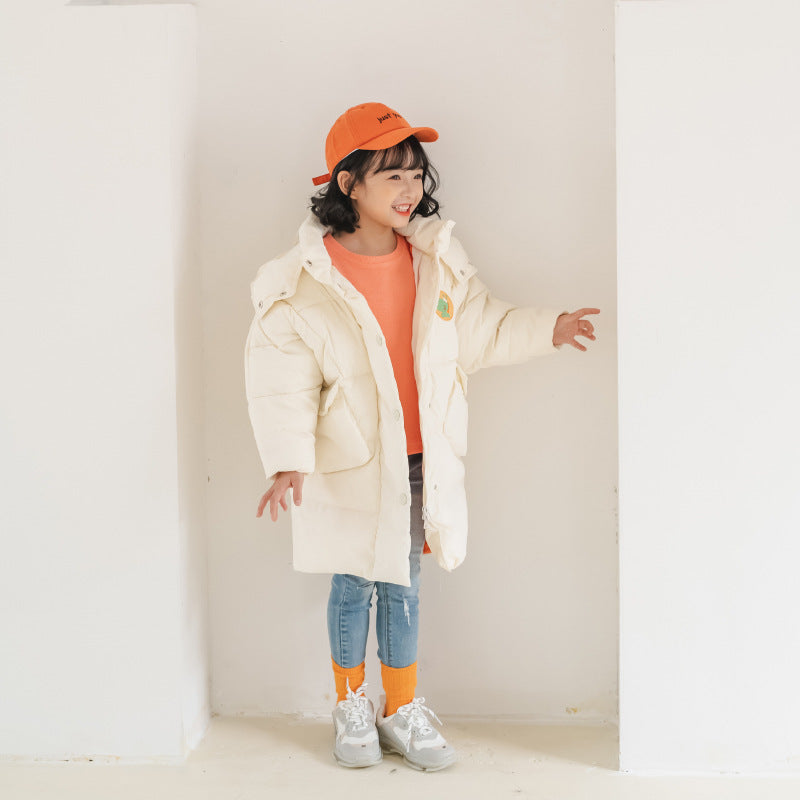 Fashion Solid pärg pojkar mitt-längd Down Jacka
