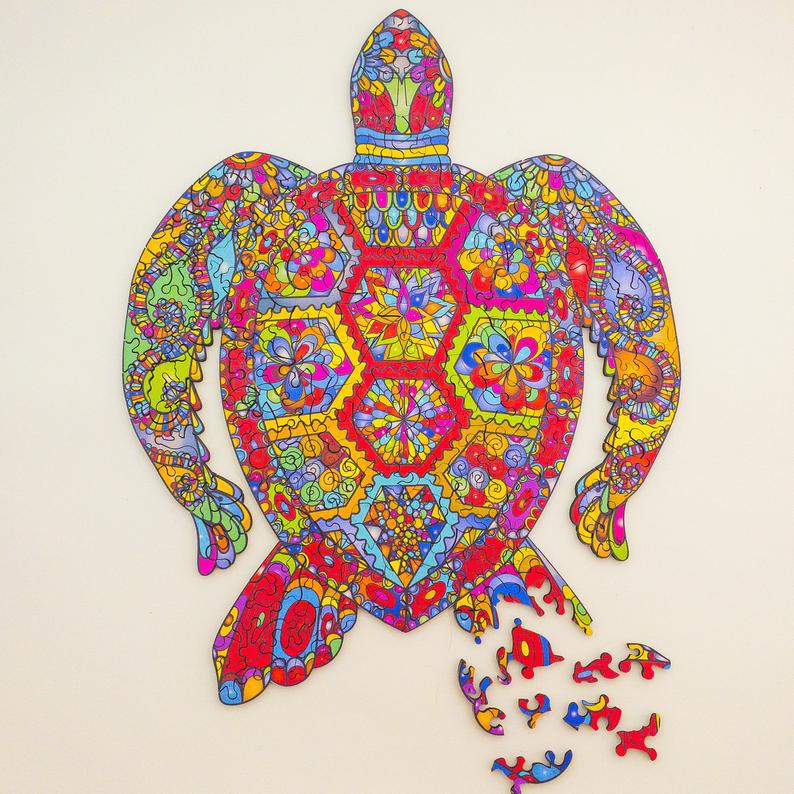 Puzzle en bois bricolage pour adultes et enfants, chaque pièce est en forme d'animal, cadeau de noël, tortue éléphant colorée, puzzle en bois