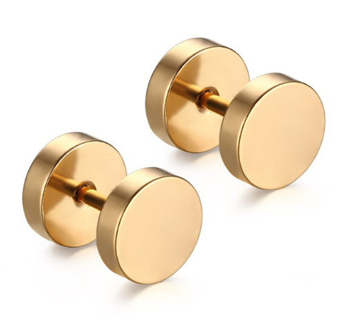 Boucles d'oreilles en acier inoxydable pour femmes et hommes, 8MM, or, argent, noir, haltère, Piercing, Tunnel, Punk, bijoux gothiques
