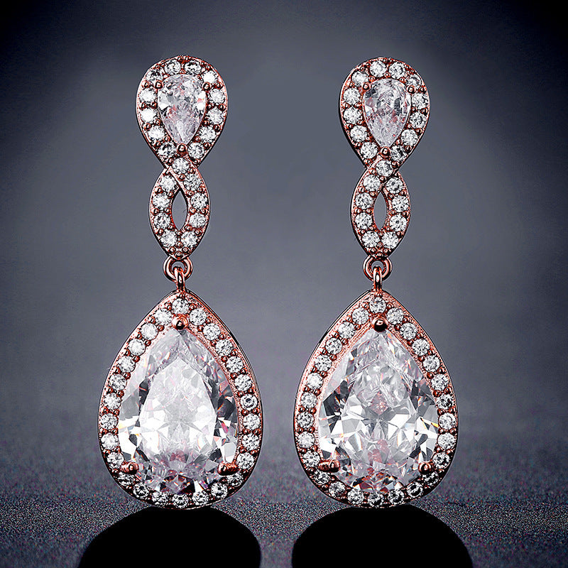 Bridal Banquet Drop-shaped Earrings With AAA Zircon