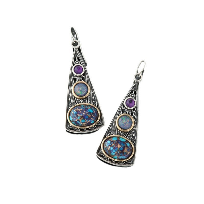 Retro Fashion Creative Triangle Amethyst Opal Earrings