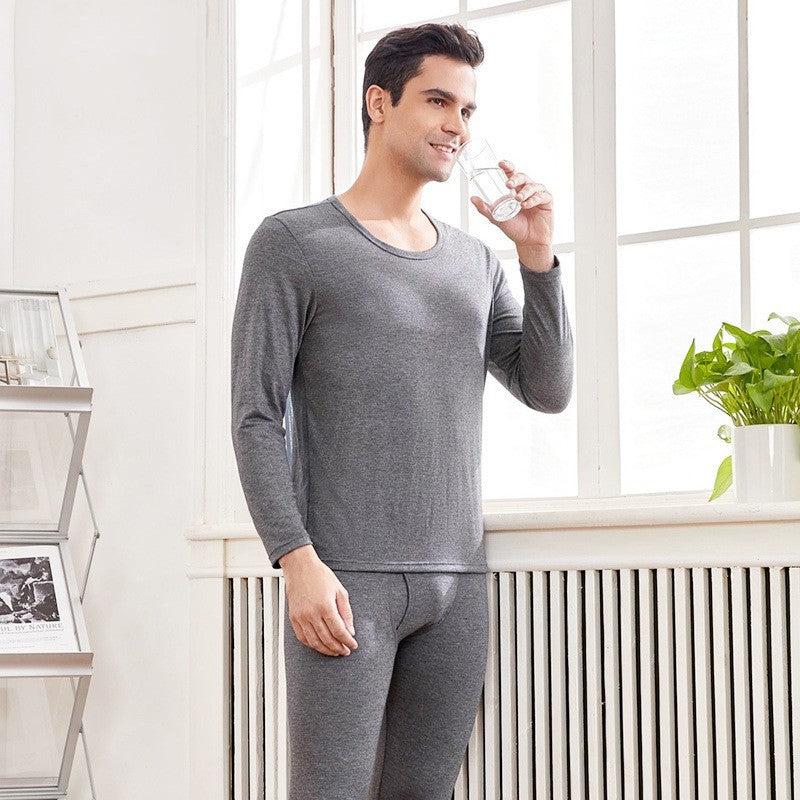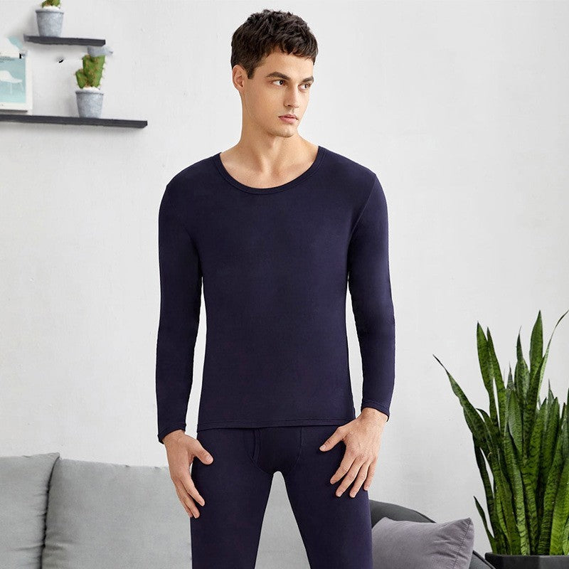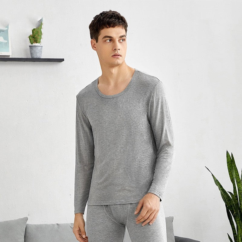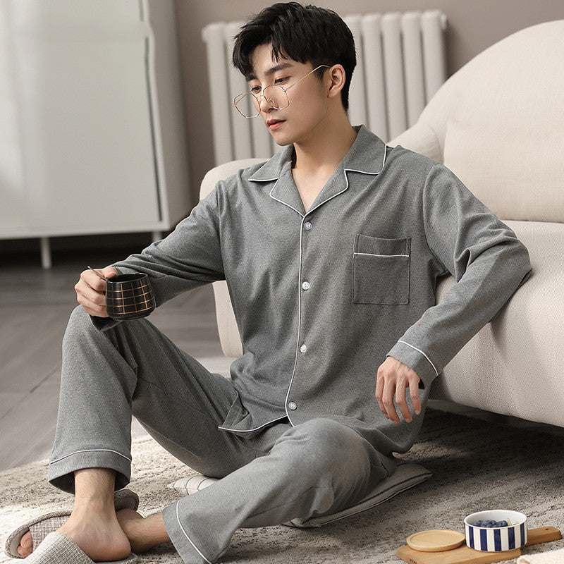 Simple Thick Cotton Long-sleeved Men's Pajamas