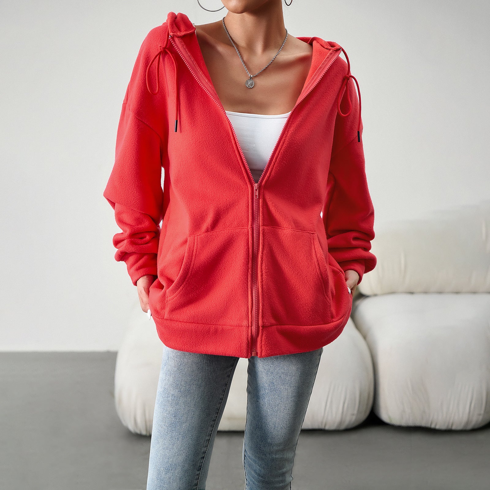 Casual Fashion Hooded Cardigan Jacket With Pockets Winter And Autumn Loose Sports Coat Women Solid Outwear Clothing