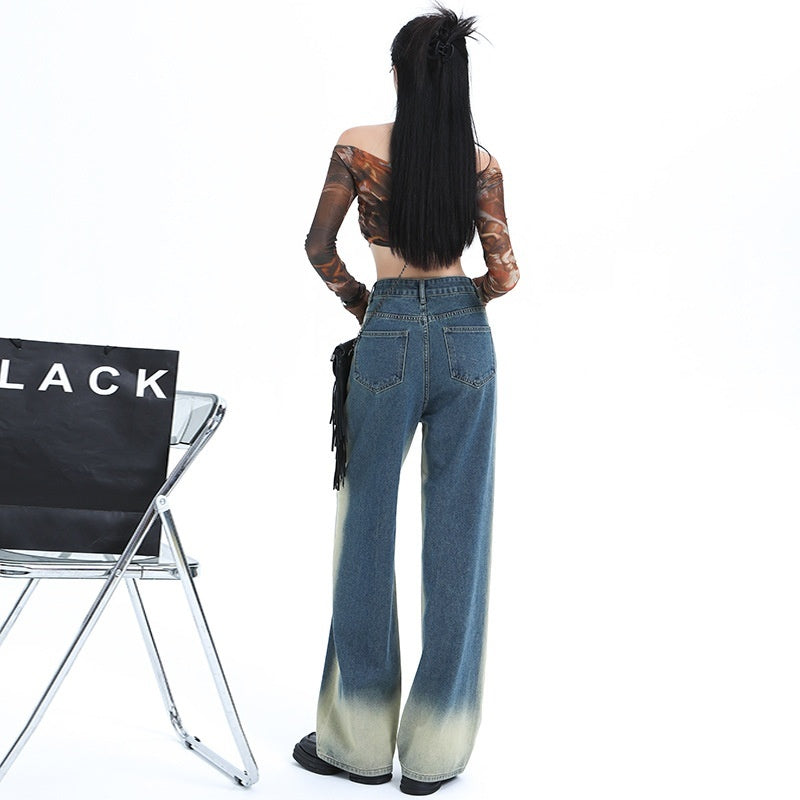 Blue Gradient High Waist Slimming Hot Girl Mop Pants