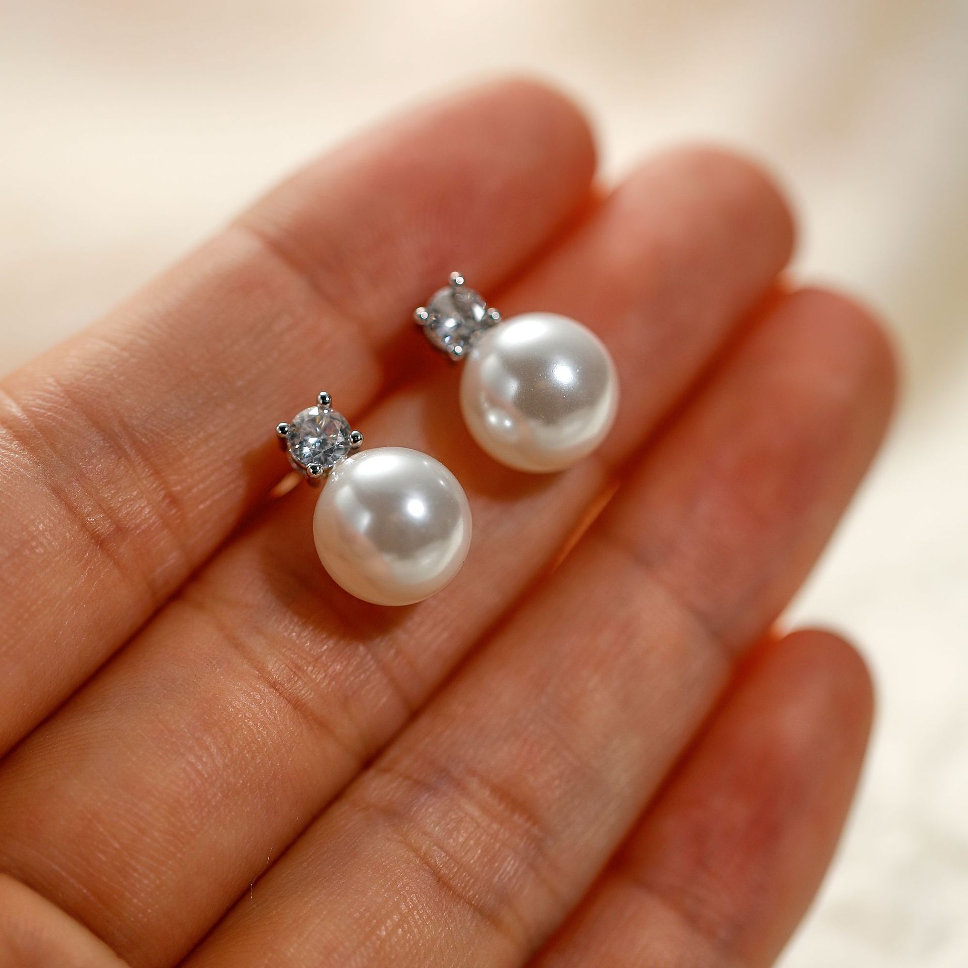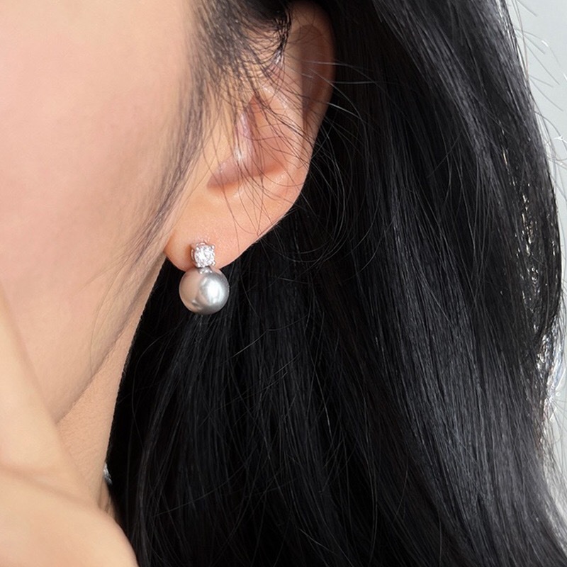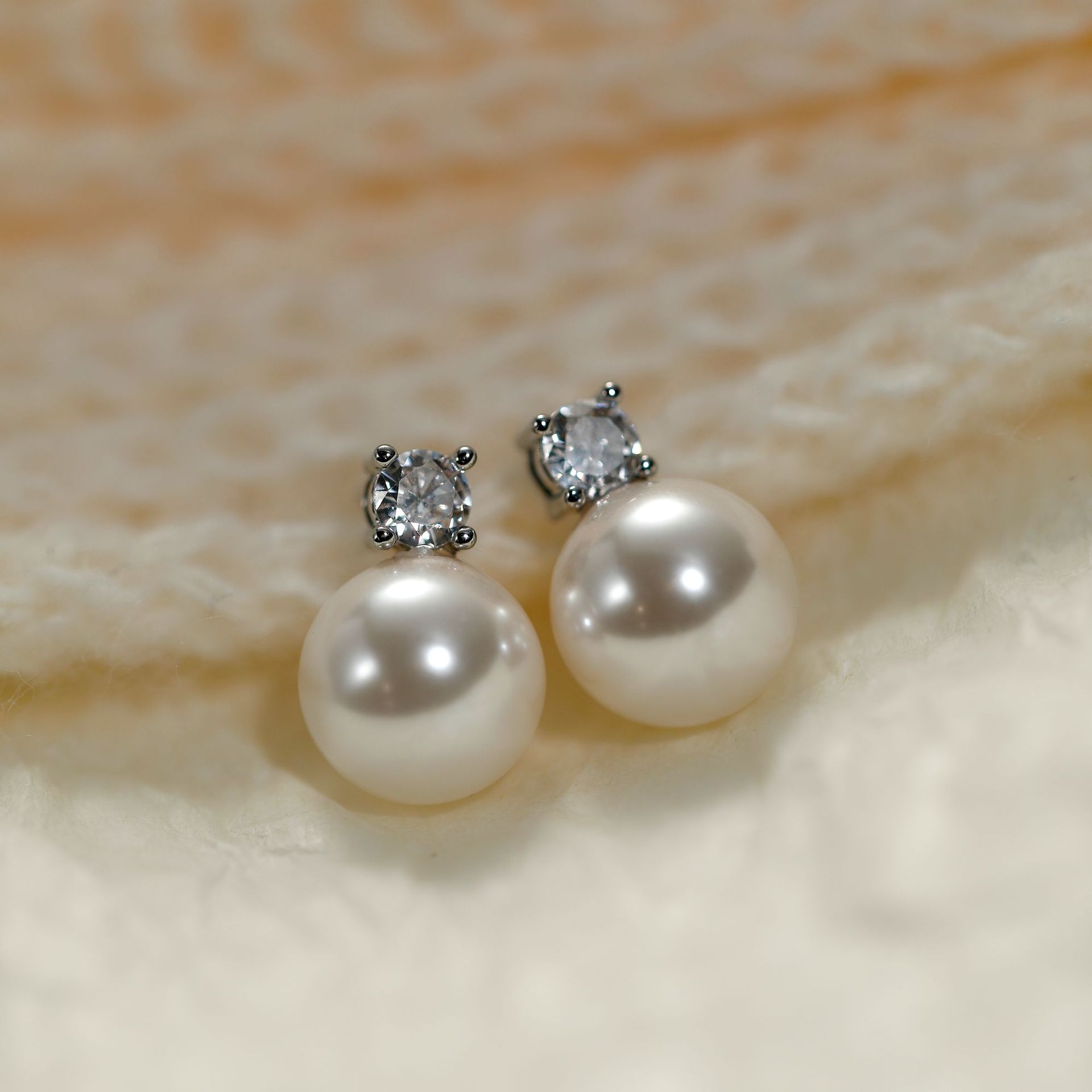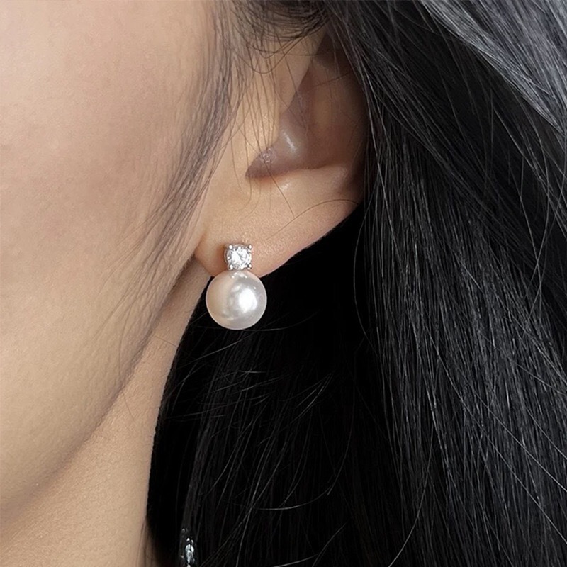 Copper Plating Single Zircon Pearl Silver Stud Earrings