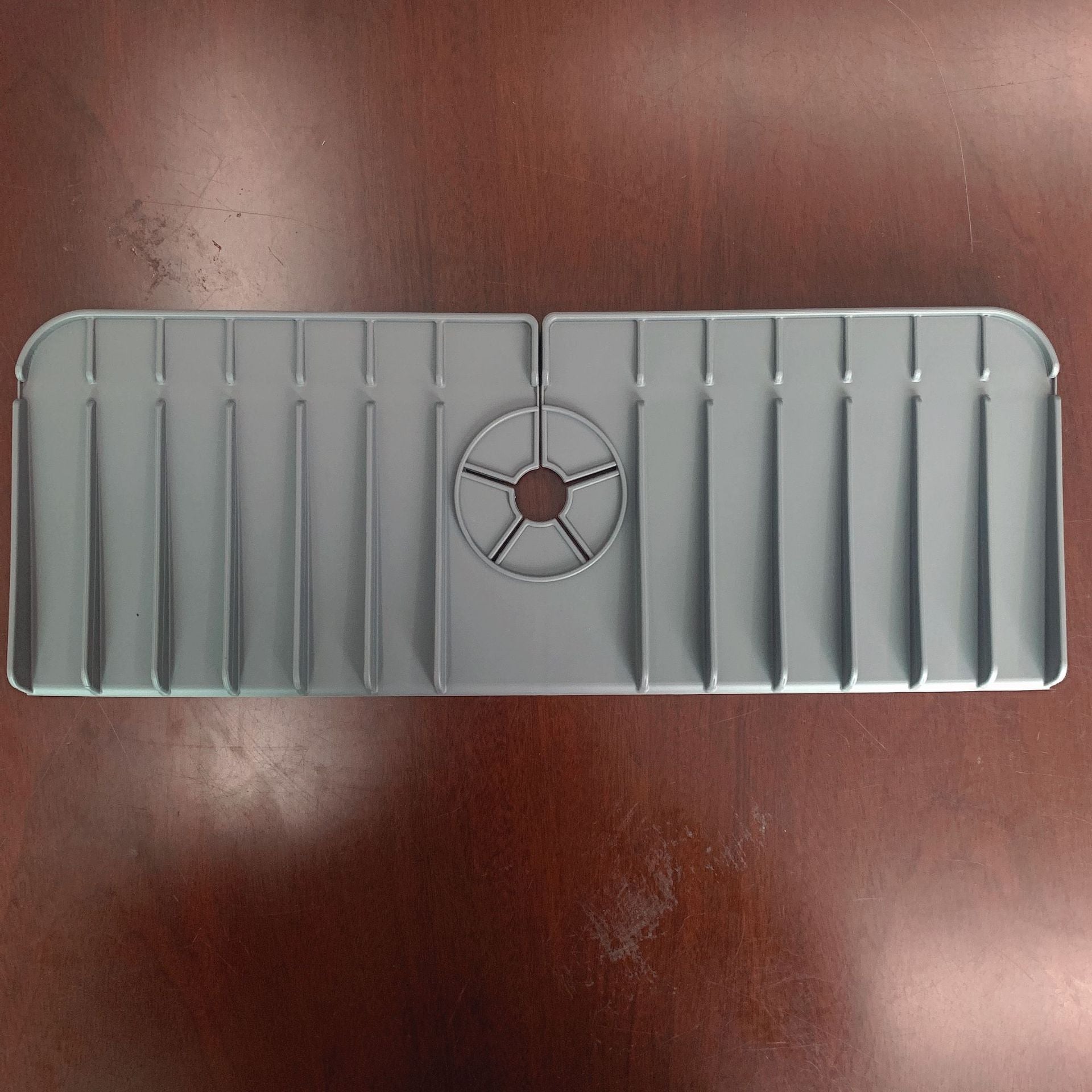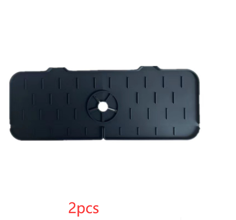 Essayez ce tapis anti-gouttes avec poignée de robinet en silicone. Ce tapis robuste et flexible reste en place, s'écoule bien et garde les comptoirs au sec