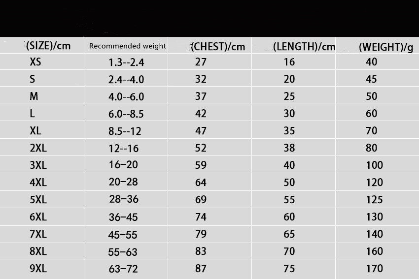 Taille : XS, S, M, L, XL, 2XL, 3XL, 4XL, 5XL, 6XL, 7XL, 8XL, 9XL.