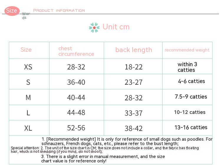 Size: XS-about 1.00 kg-1.50 kg, S-about 2.00 kg-3.00 kg, M-about 3.50 kg-4.00 kg, L-about 5.00 kg-6.00 kg, XL-about 7.00 kg-9.00 kg