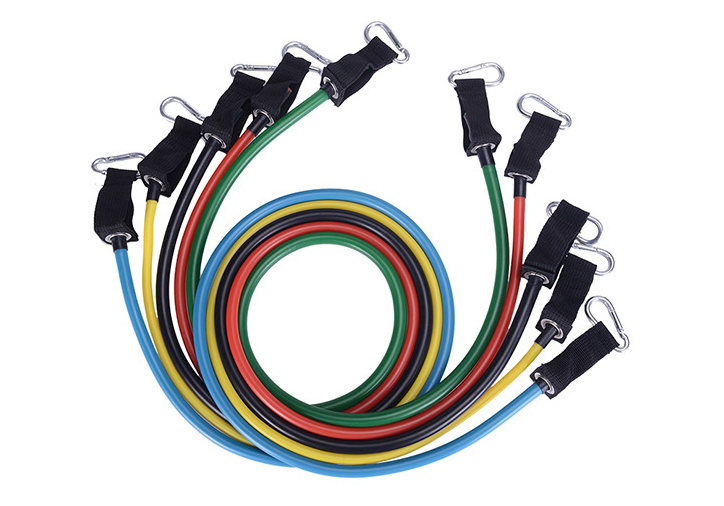 5 * bandes élastiques : noir (30 lbs), bleu (25 lbs), rouge (20 lbs), vert (15 lbs), jaune (10 lbs)