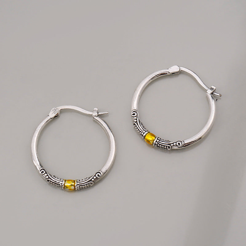 Retro Two-color Ring Earrings Carved Pattern Personality