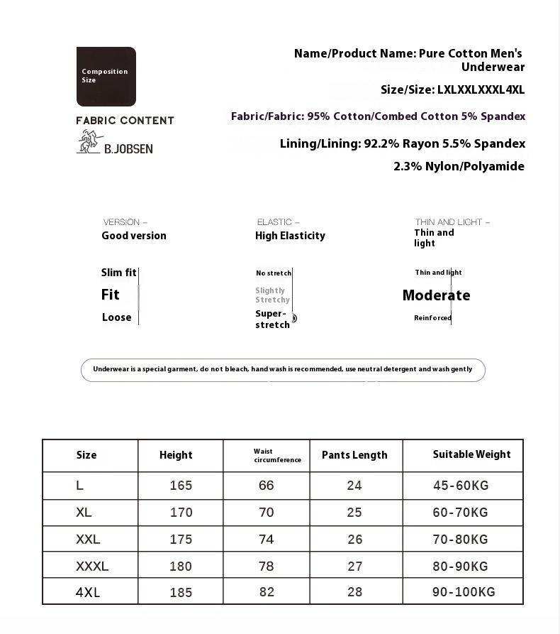 7A Antibacterial Crotch Summer Breathable Plus Size Purified Cotton Men's Underwear