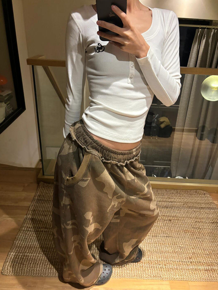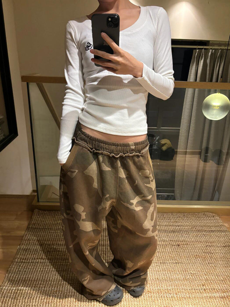 American Hot Girl Camouflage Wide-leg Pants For Women