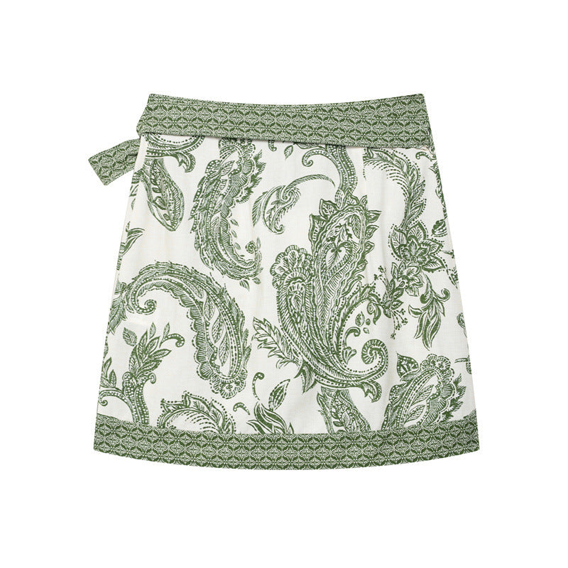 Women's High-Waist Printed Sarong Skirt - Lace-up Bow Design