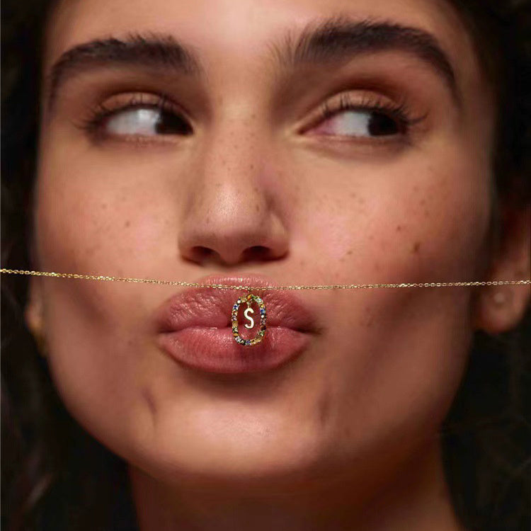 Colored Rhinestone Necklace 26 Alphabet Necklace 18K Fashion Jewelry
