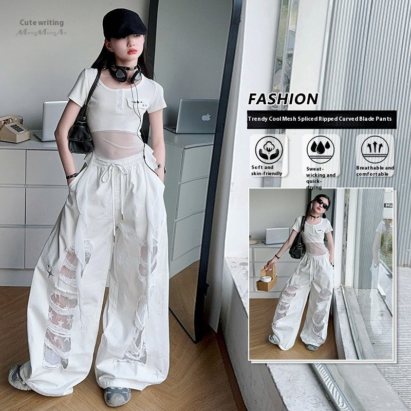 Color: white【 ripped lace Denim]]