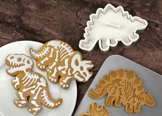 3 PIECES DINOSAUR FOSSIL CUTTER / STAMPERS: The dinosaur fossil cookie cutter include Stegosaurus & Tyrannosaurus Rex & Triceratops three style, look very funny. Children tend to be full of curiosity to new things, unique dinosaur cookies can recall the child's appetite. Let your children love the DIY cookies.