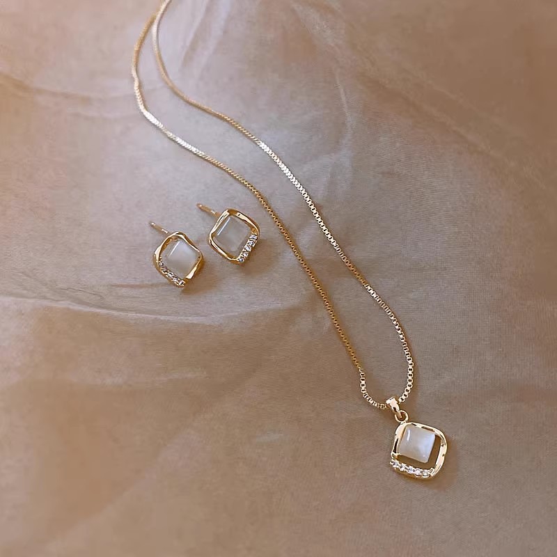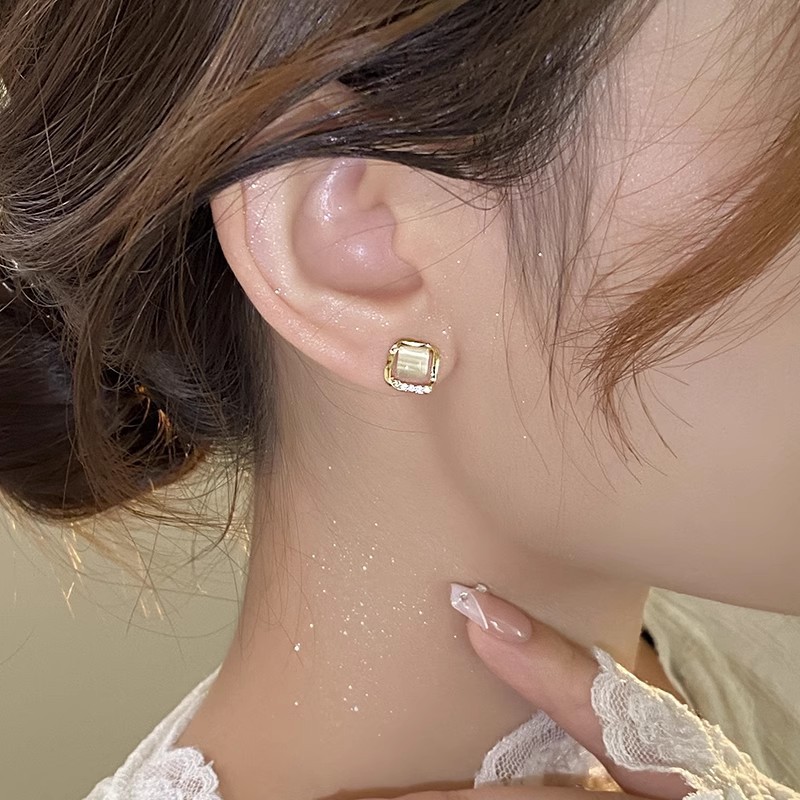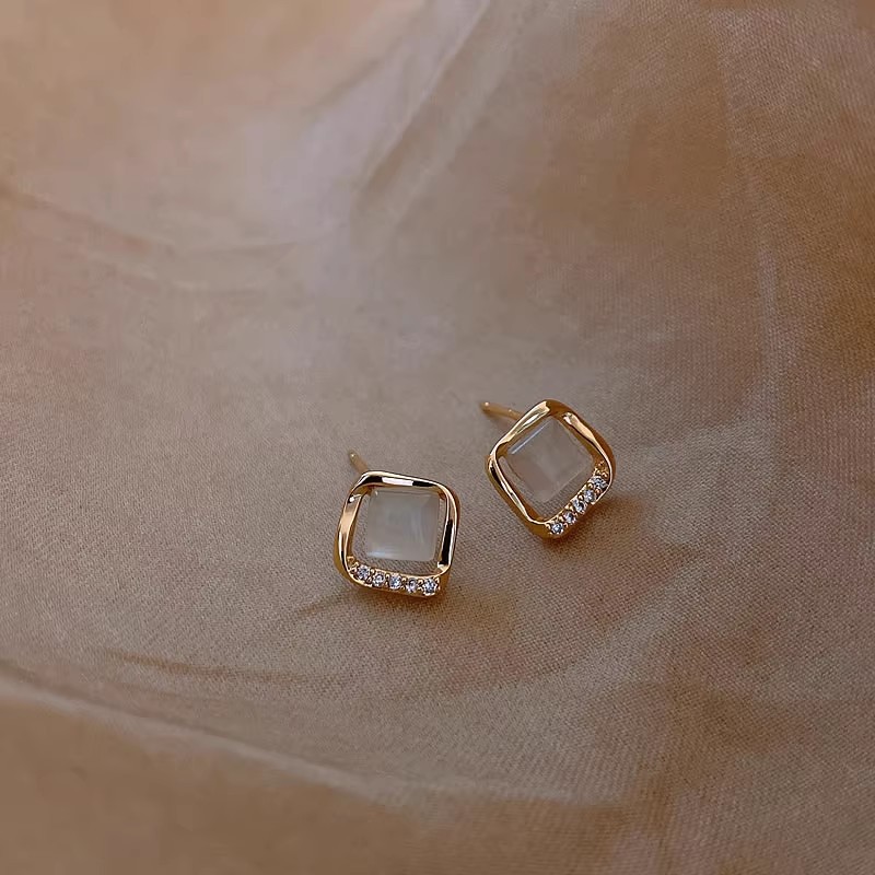 French Entry Lux Opal Small Square Stud Earrings