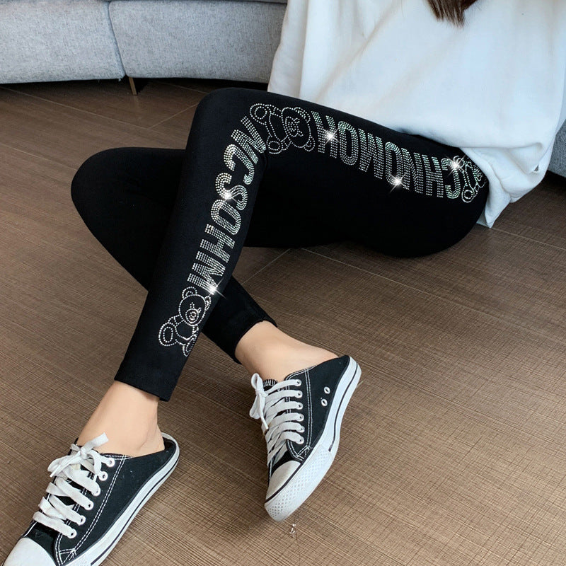 Hot Girl Fashion Diamond Shiny Skinny Ankle-length Pants