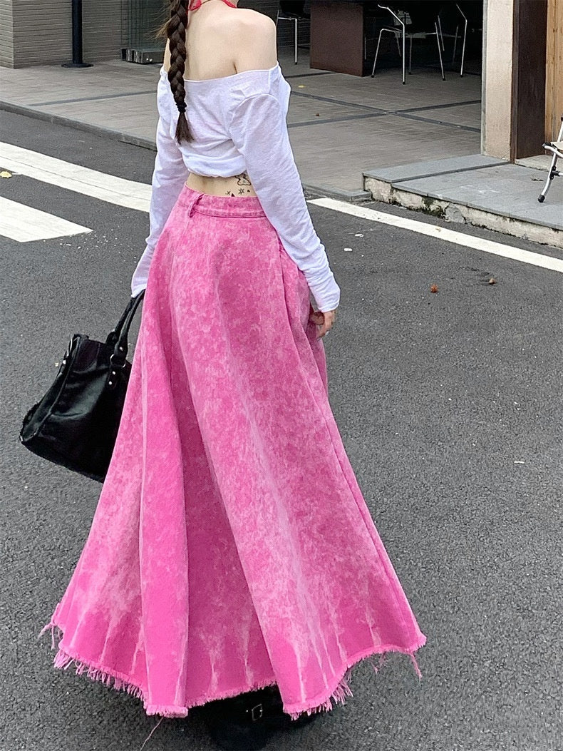 This dress is a must-have for any fashion-forward wardrobe. Made from high-quality denim fabric, it features a unique umbrella skirt design that's sure to turn heads. The peach washed color gives it a soft, romantic look that's perfect for spring and summer. It's not just a dress, it's a statement piece that speaks volumes about your style and confidence.
