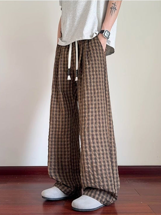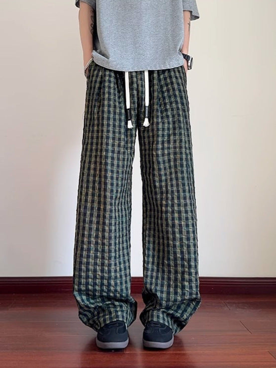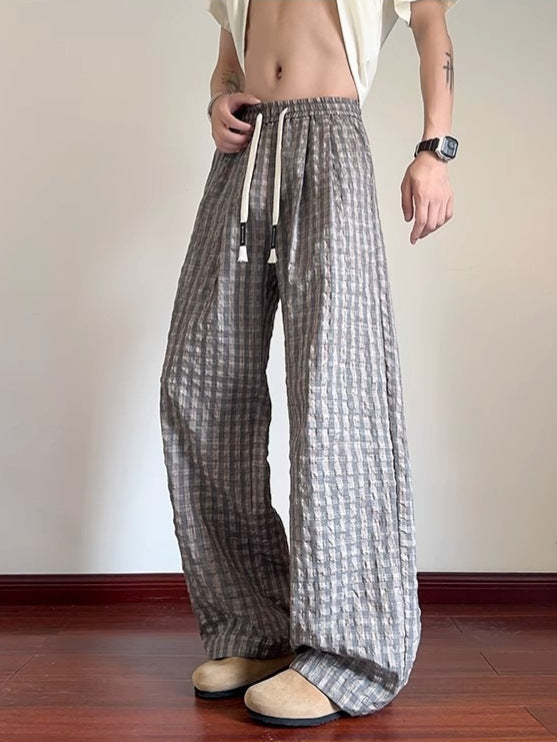 Seersucker Plaid Drape Texture Men's Casual Pants