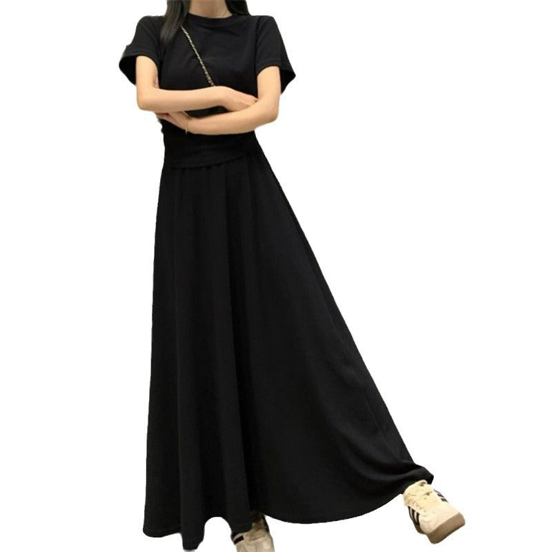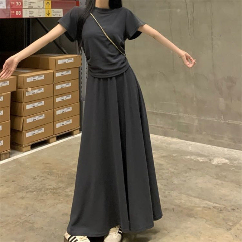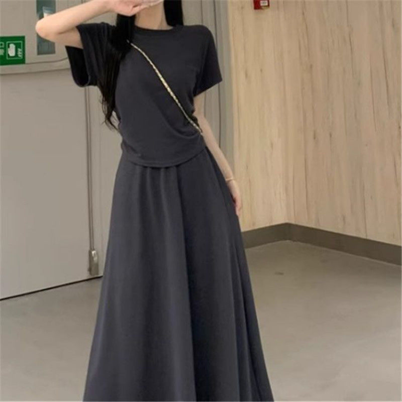 Professional Solid Color T-Shirt Top Skirt Suit - Polyester Flying Sleeves (Black/Gray, M-5XL, Temperament Commute)