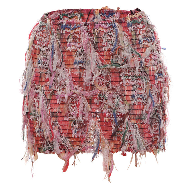 Street Trend Creative Stripes Tassel High Waist Slim Fit Skirt Women