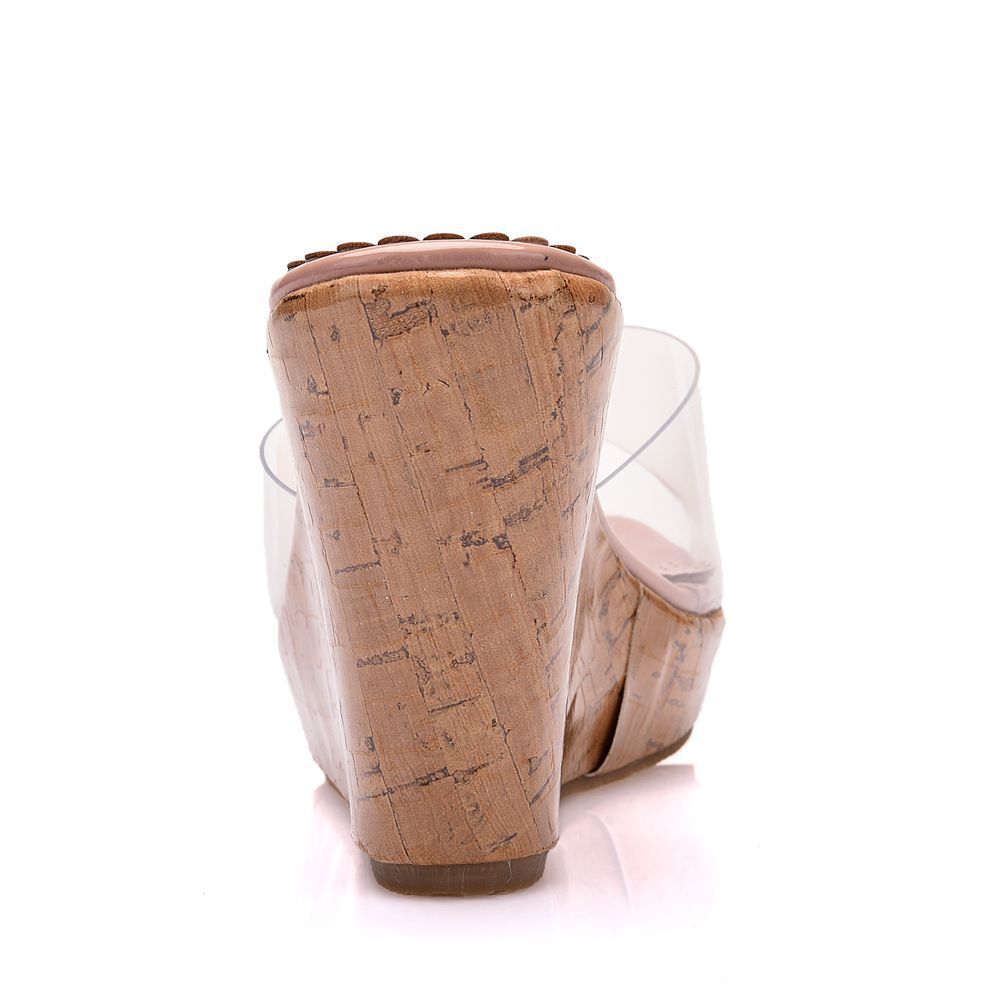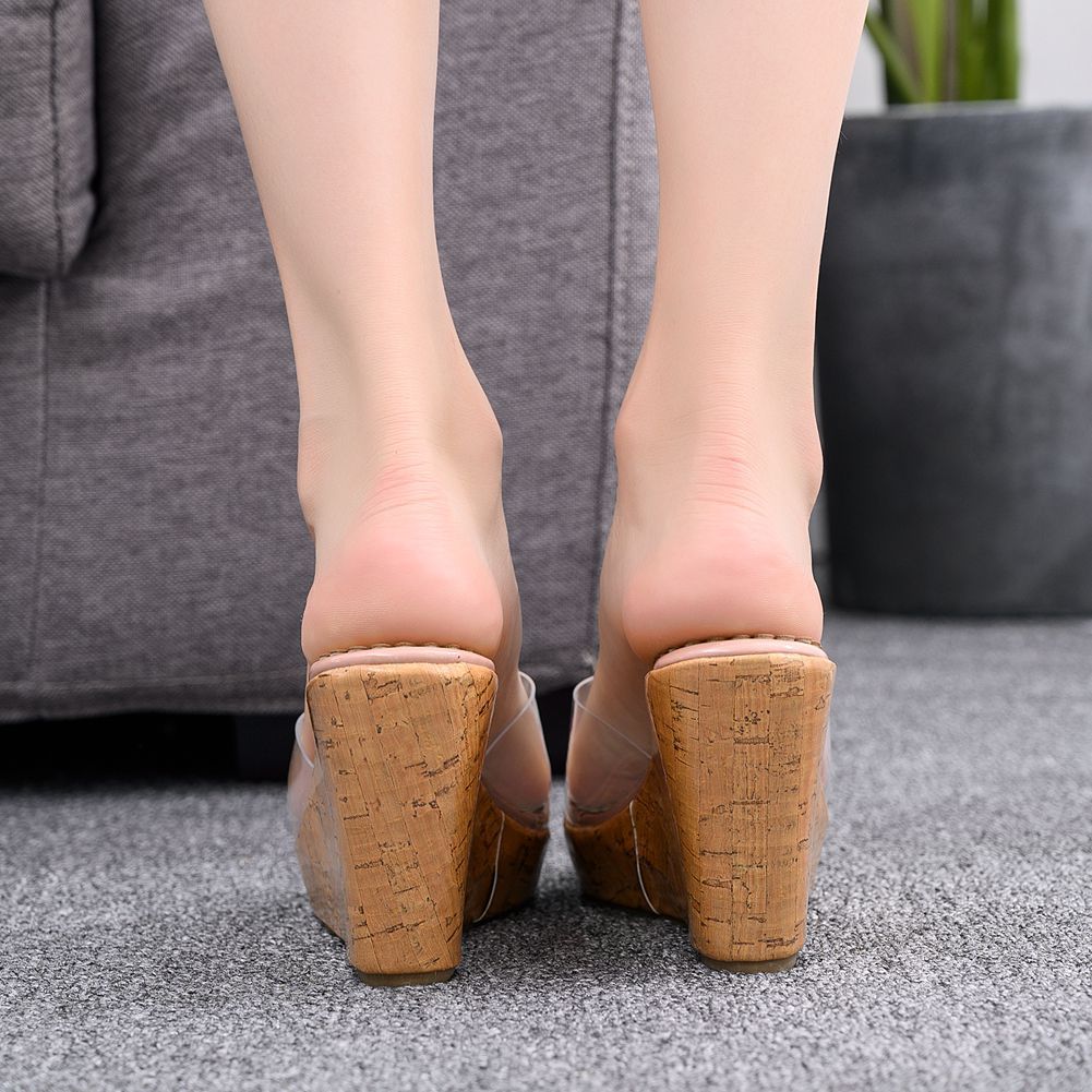 Transparent Nude Color Fish Mouth Sandals Round Toe Wedge Sandals Wedge Slippers