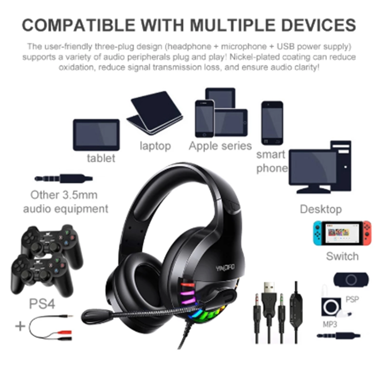 Wired Gaming Headset With ,Icrophone Sound Card Line Control