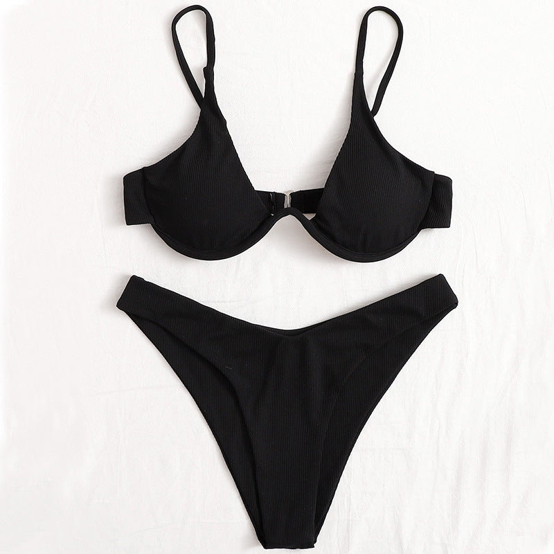 Independent Station Cross-border European And American Solid Color Sexy Split Bikini Swimsuit Women