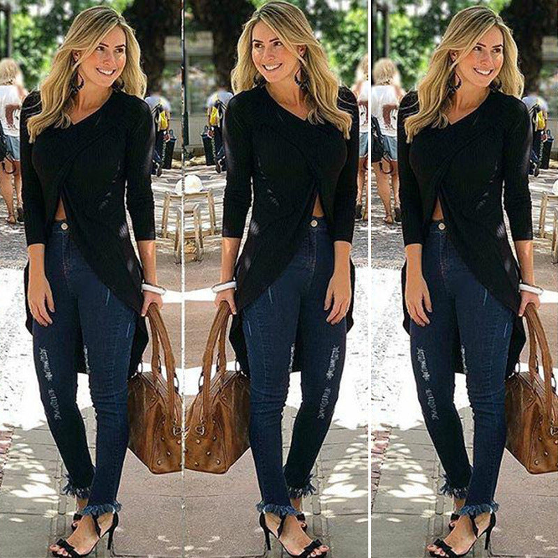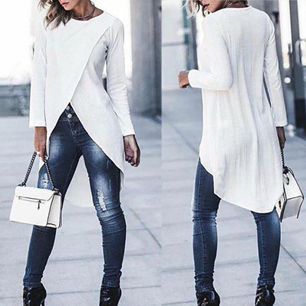 Irregular long sleeve T-shirt women