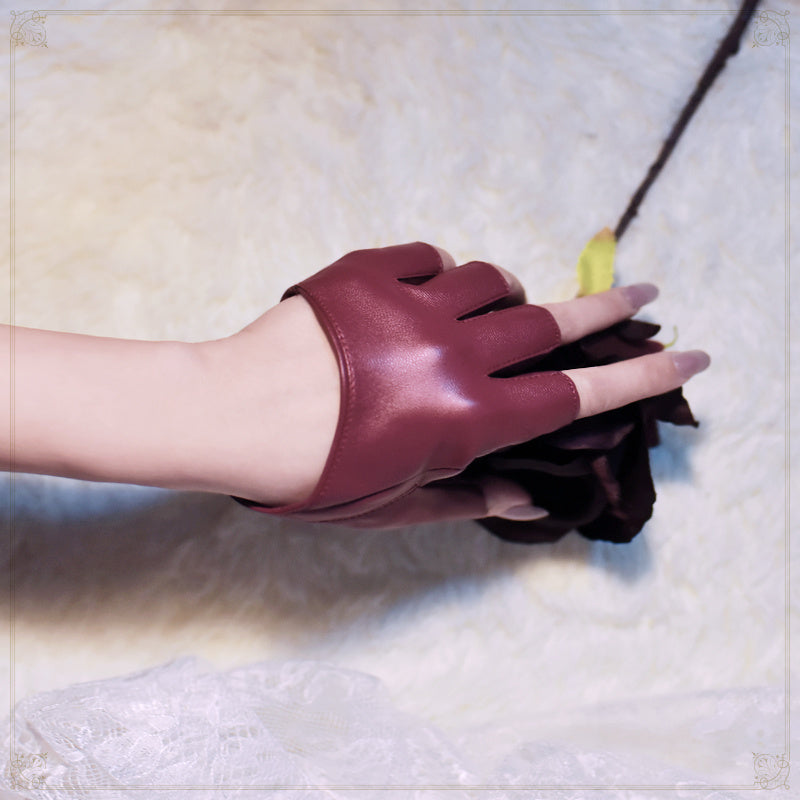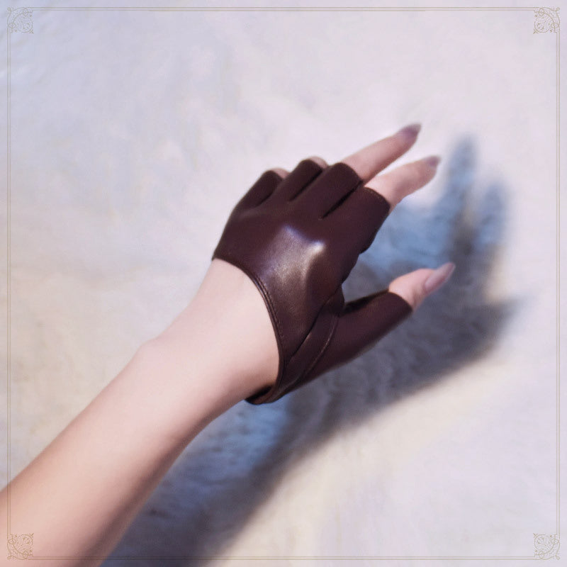 Jumpertjej goth punk jk läderhandskar med halva fingrarna och halva handflatan