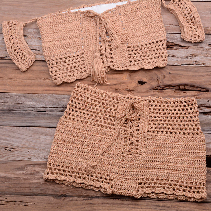 Europeisk och amerikansk sexfärgad strandbikinidräkt stickad badkläder virkad bohemisk bh för kvinnor