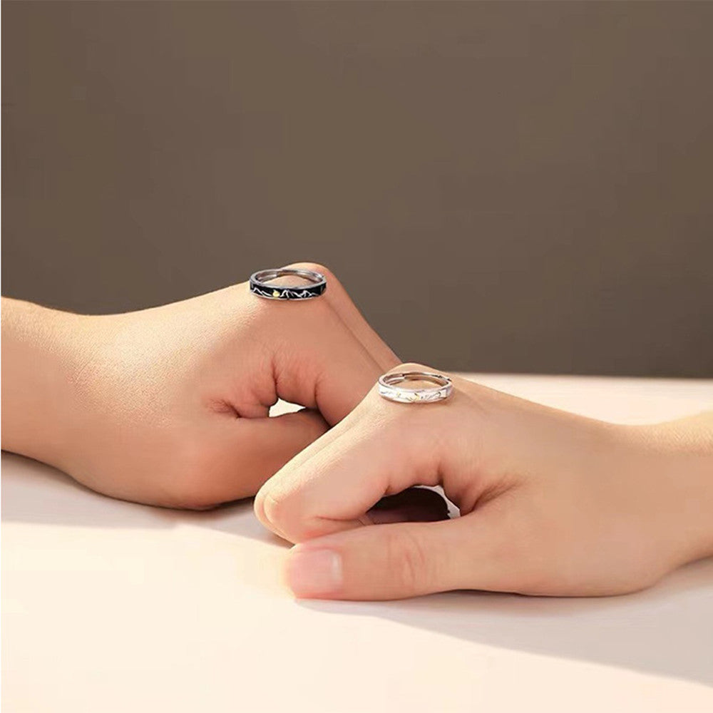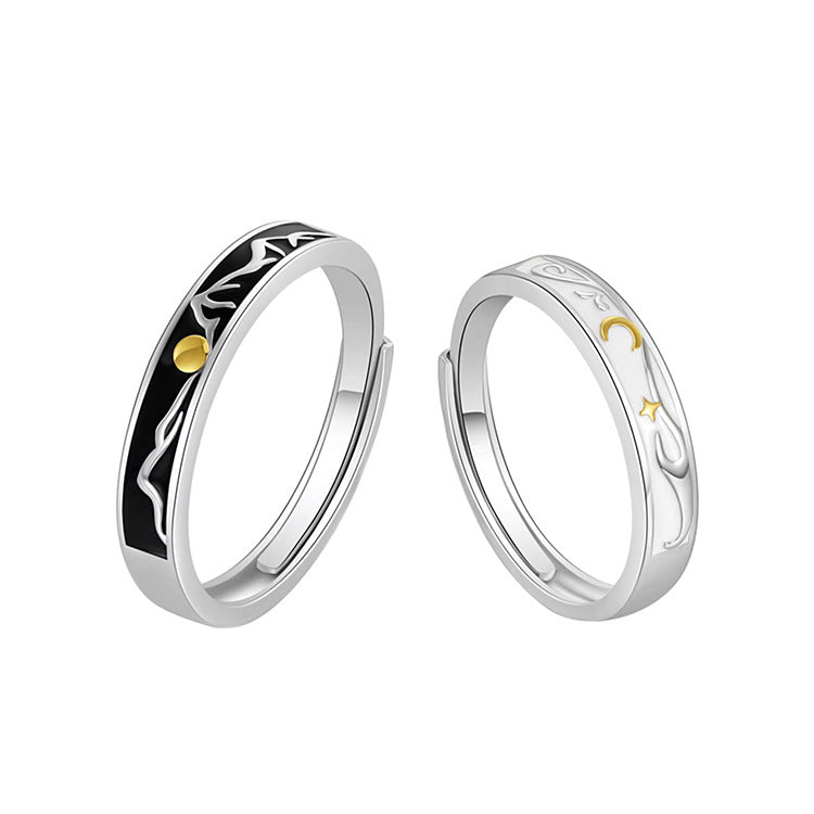Moon Star S925 Silver Enkla Studentringar För Män Och Kvinnor Parringar Öppning Justerbara