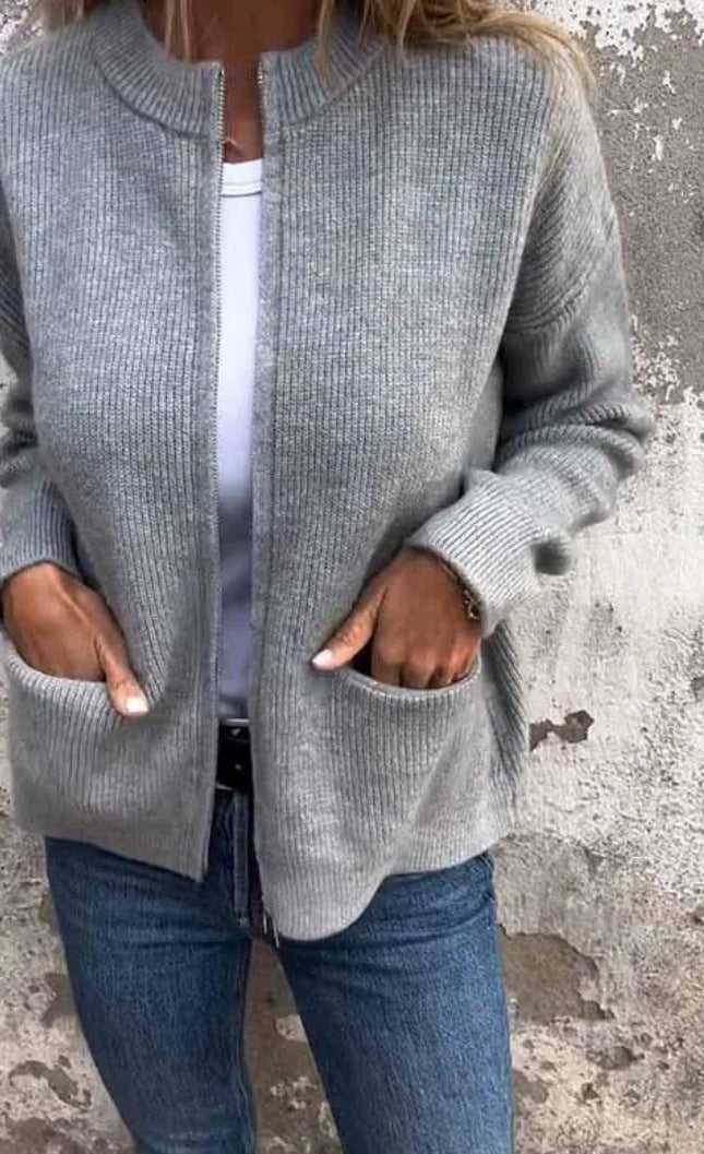 New Solid Color Casual Coat Zipper Sweater Cardigan