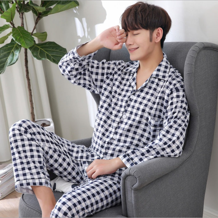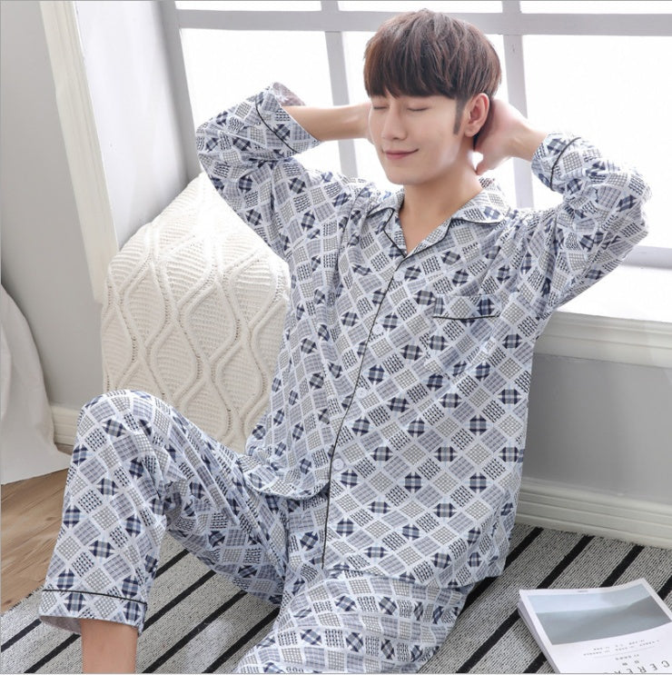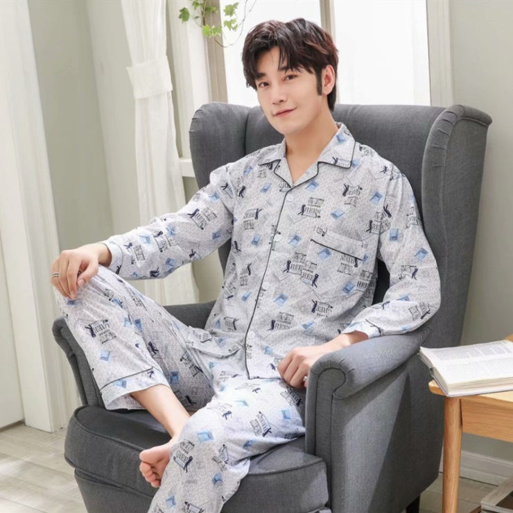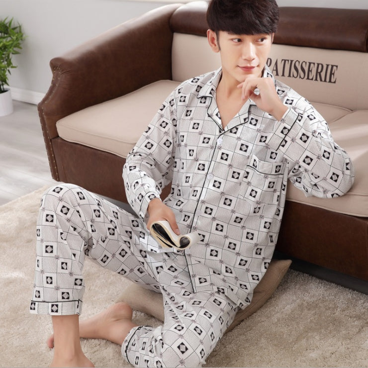 Issilk tunn herrpyjamasdräkt med lång ärm