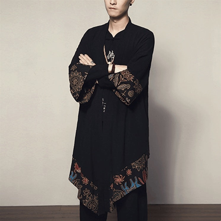 Retro kinesisk stil för män i etnisk stil, tangkostym med trekvartsärmar, kimono