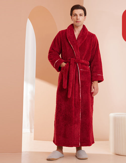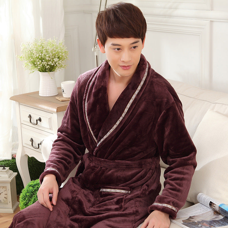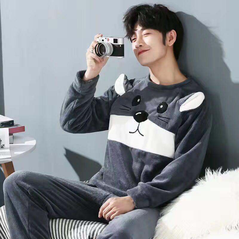 Höst- och vinterpyjamas för män i korallfleece, förtjockad varm