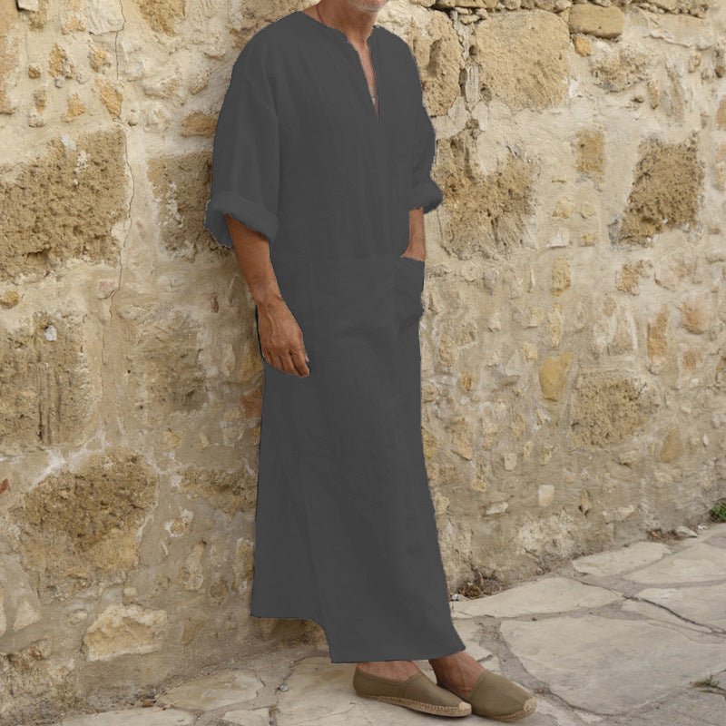 Ny herrlång bomulls- och linne-T-shirt i Mellanöstern