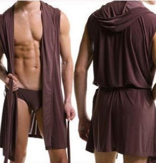 Långärmad nattlinne för män, badrock i siden, hemkläder