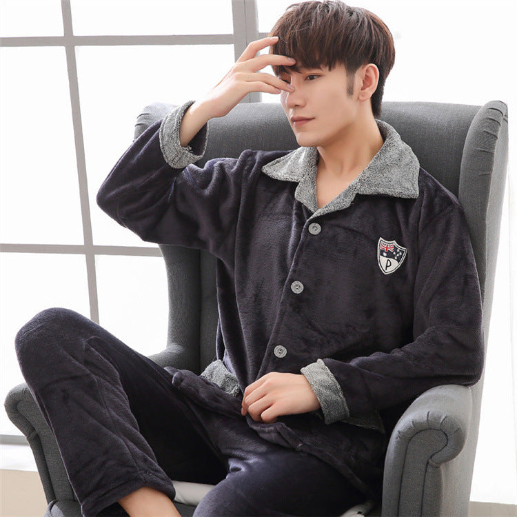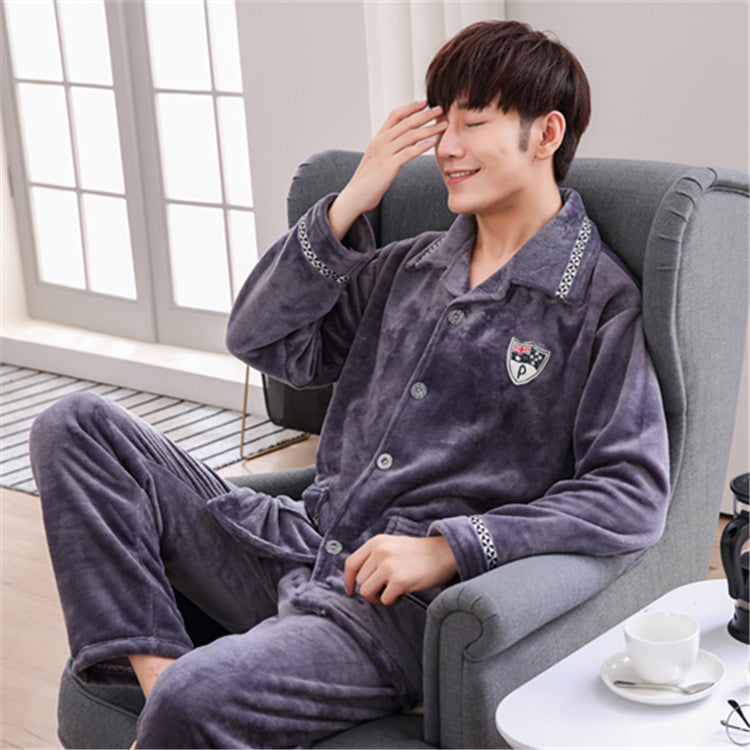 Höst- och vinterflanellpyjamas för män, herrkofta med slag