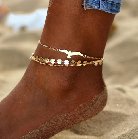 Sommar Sexig Silver Tofs Anklet för kvinnor Mynt Hänge Kedja Ankel Armband Fot Smycken Barfota Sandal