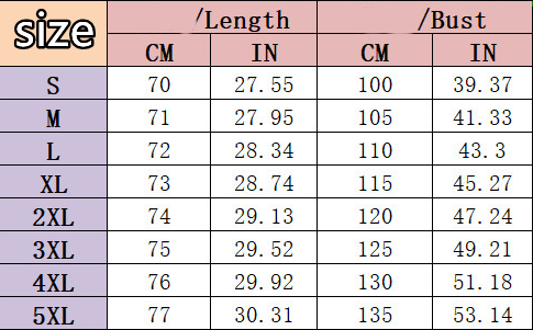 Dimensions: S, M, L, XL, 2XL, 3XL, 4XL, 5XL