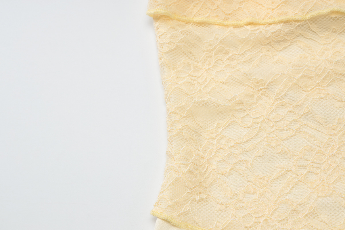 Genomskinlig Spetsklänning med Träöron och Navelväst med Hög Midja och Tvådelat Set