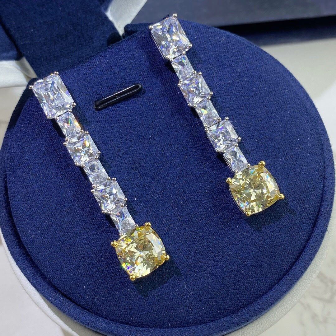 Strålande trapetsformade gula diamantörhängen för kvinnor